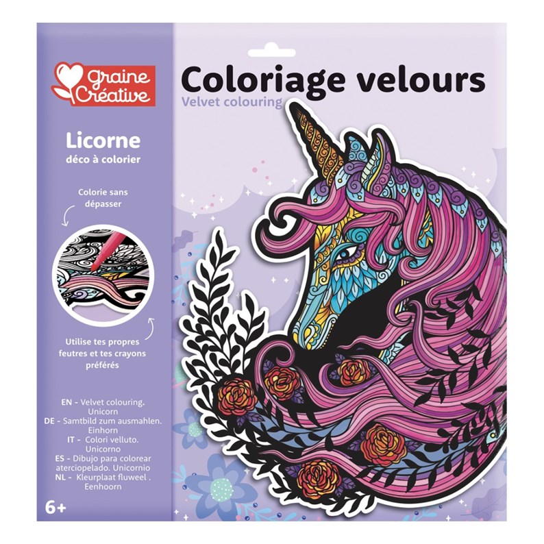 Un Coloriage velours licorne  En savoir plus