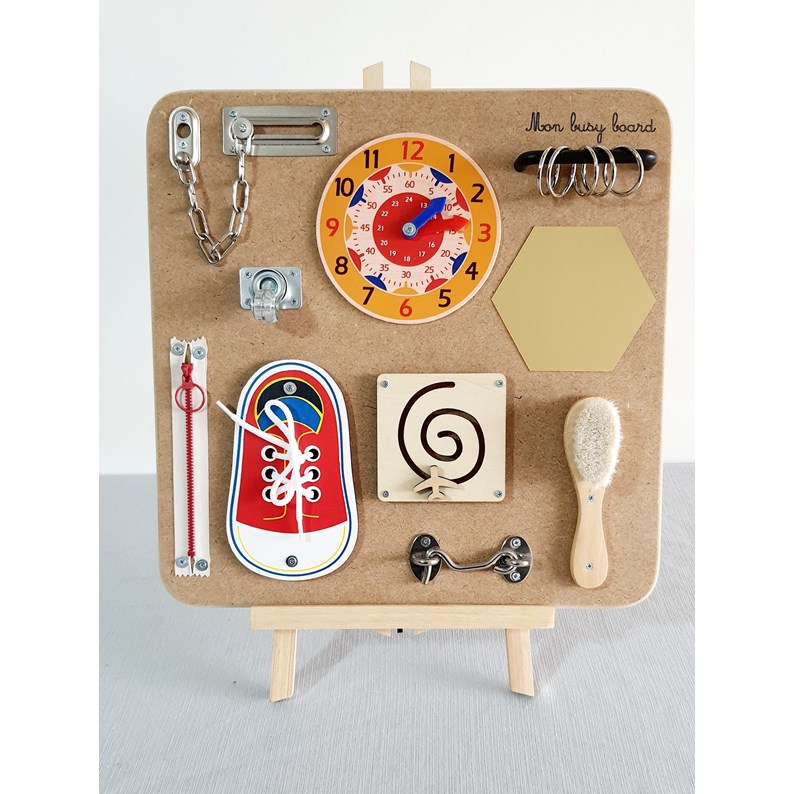 Inspiré de la méthode Montessori, le busy board est idéal pour travailler la motricité fine et le développement sensoriel. Votre enfant apprendra en s'amusant les petits gestes du quotidien et ainsi stimulera des compétences essentielles de la vie réelle.