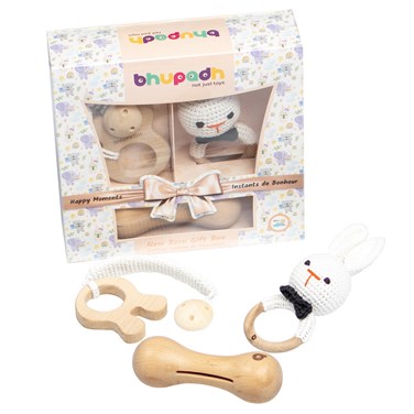 Ce coffret incarne l'alliance entre l'élégance des matières naturelles et la chaleur de l'artisanat. Chaque pièce est crochetée à la main avec soin par des artisans, selon un savoir-faire ancestral valorisé par Bhupadh . Le bois de hêtre , robuste et naturellement antibactérien, apporte sécurité et durabilité à ces premiers jouets d'éveil.