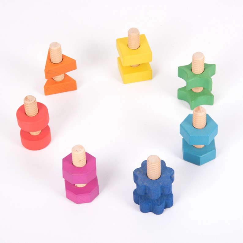 Ce jeu composé de sept écrous est également idéal pour la découverte des formes et des couleurs.