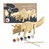 1 Triceratops de 22 cm de long, 6 petits pots de peinture (rouge, jaune, violet, vert, noir et blanc) et 2 pinceaux sont inclus dans la boîte.