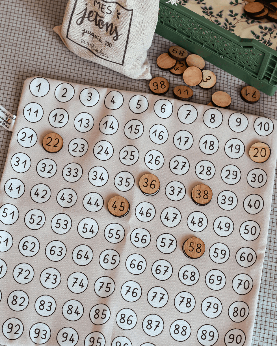 Variez les activités pour que votre enfant gagne en confiance et en autonomie en manipulant les nombres jusqu'à 100 (reconnaître et associer les nombres, compléter 1 case sur 2, quelques nombres manquants etc.).