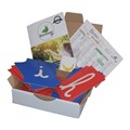 - le matériel éducatif, contenant 26 lettres rugueuses (apprentissage de leur tracé et leur son - dimension 16x12cm) + 26 cartes images (à associer aux bonnes lettres - dimension 9x6cm).