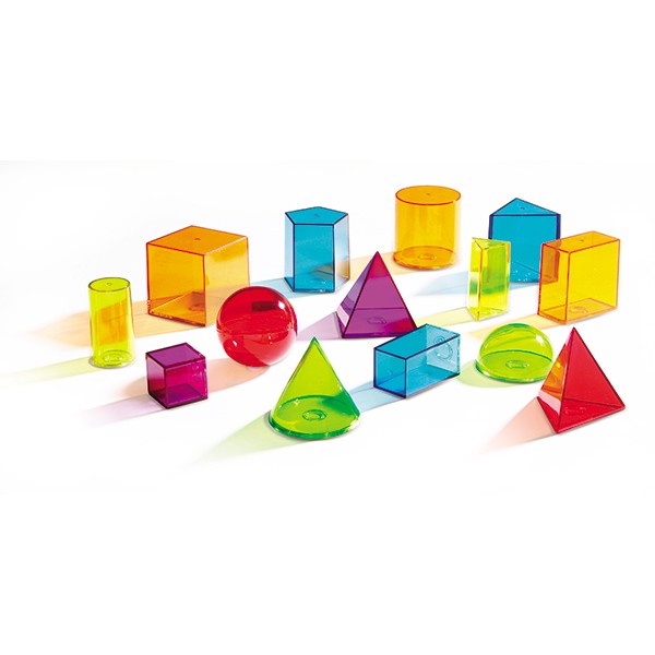 Explorez la géométrie, le volume et d'autres concepts de mesure avec ces formes 3D transparentes aux couleurs vives et audacieuses.