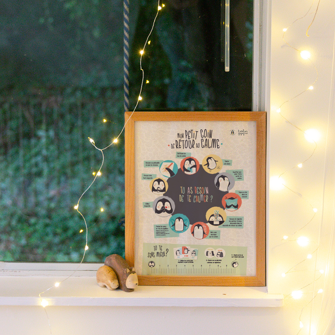 Le poster de retour au calme est un support ludique et rassurant conçu pour accompagner votre enfant dans la gestion de ses émotions. Grâce à 10 ressources pour se calmer, représentées par Augustin le pingouin, votre enfant découvre des actions faciles pour s’apaiser lorsqu’il vit du stress, de la colère ou une émotion difficile.