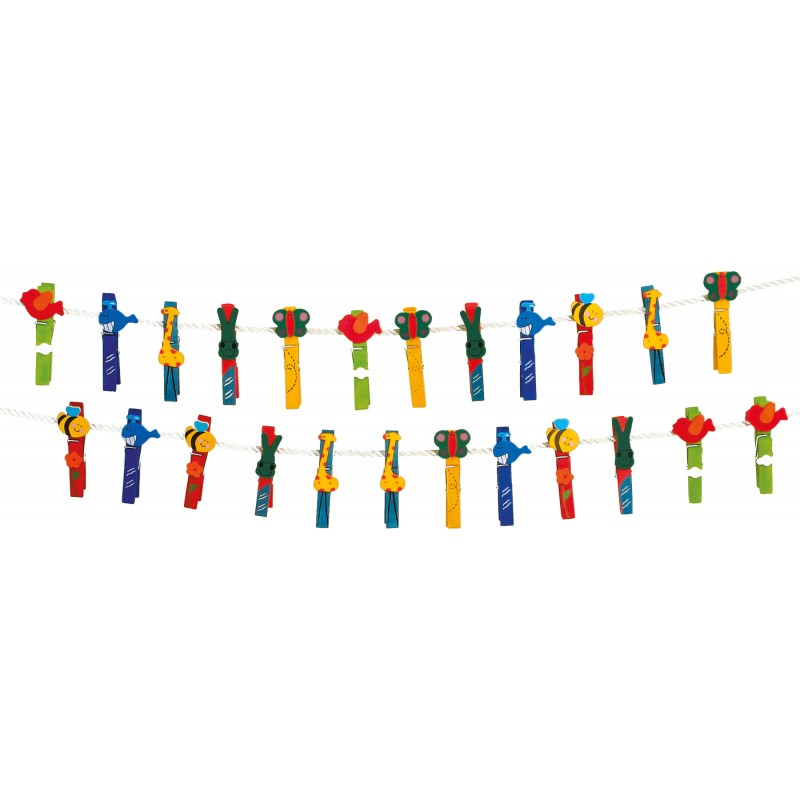 Avec ces 24 pinces à linge multicolores décorées d'animaux, on s'amuse à accrocher le linge des poupées!