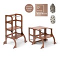 Le STEP’n’SIT est une tour d’apprentissage transformable en table et chaise, inspirée de la pédagogie Montessori. Conçu pour accompagner l’enfant dès 18 mois dans la découverte de son environnement (cuisine, salle de bain, activités créatives…), il favorise l’autonomie, la coordination et la confiance en soi. Sa conception évolutive permet de passer facilement de la position “ tour ” à la position “ table + chaise ” en quelques mouvements simples, pour jouer, dessiner, prendre le goûter ou aider aux tâches quotidiennes.
