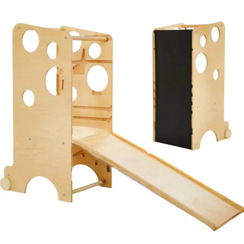 5 en 1: Tour, bureau, chaise haute, toboggan, ardoise