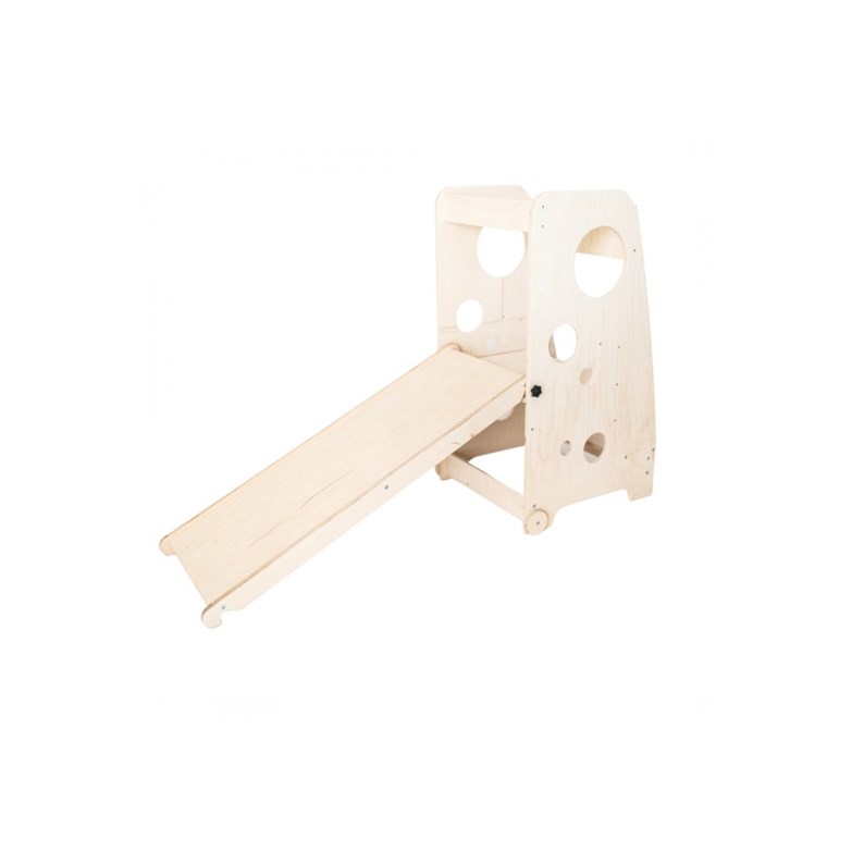 La toboggan compatible avec la tour Montessori ARIA sert aussi bien de de descente en ""toboggan"" que de surface de jeu, courses de balles.