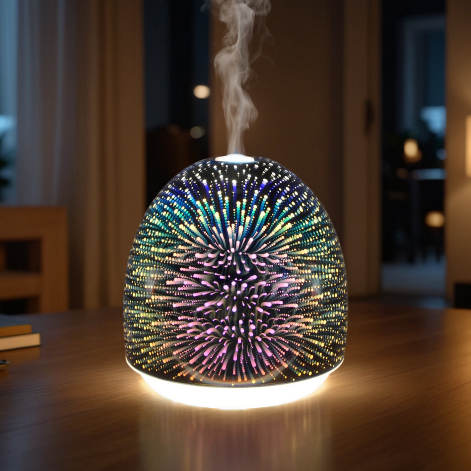En verre effet 3D, son rendu visuel est féerique et hypnotisant. Issu d'un système de diffusion innovant, le Festival dispose de nombreux atouts pour vous aider à profiter de vos séances d'aromathérapie. Ses illuminations semblables à des feux d'artifices vont égayer vos soirées et attirera les curiosités de vos convives. En plus d'être un diffuseur d'huiles essentielles et de senteurs efficace, il ravivera votre déco et fera de votre intérieur un espace cocooning et fabuleux.