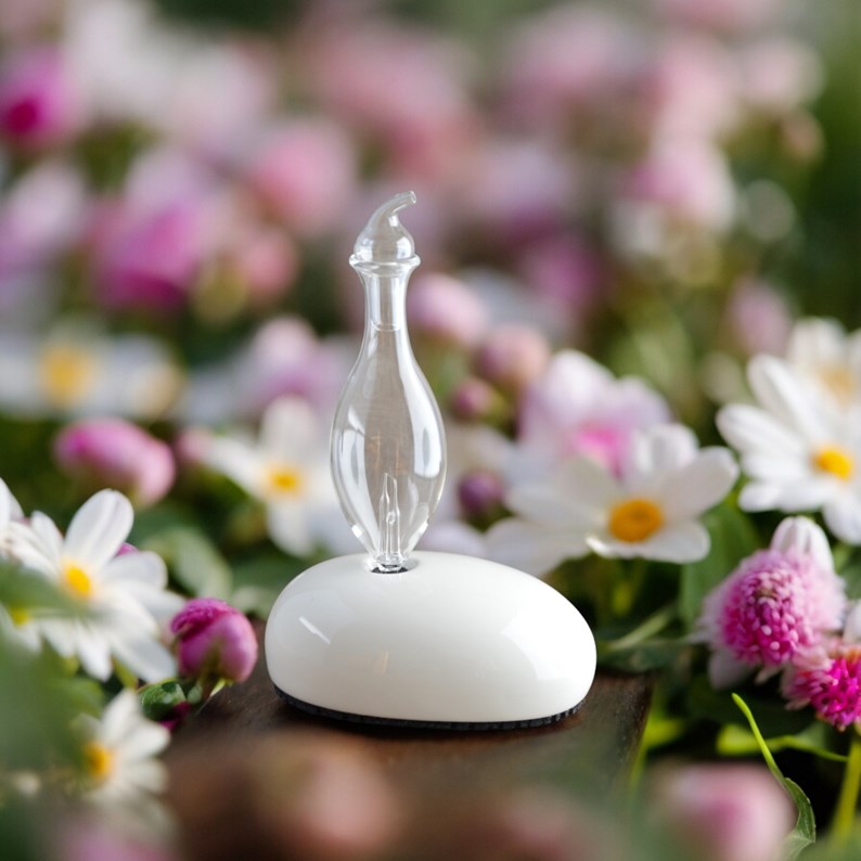 Versez des huiles essentielles dans la verrerie en respectant le niveau maximal, puis actionnez le bouton variateur. Le bouton variateur permet d’ajuster la puissance de diffusion.