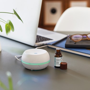 Posé sur votre bureau, dans votre salon, ce diffuseur invite à installer une ambiance délicatement parfumée aux huiles essentielles. Vous profitez de leurs bienfaits en quelques gestes simples : le couvercle se soulève pour y glisser un tampon à imprégner de quelques gouttes de la synergie Air Pur. Le diffuseur se met en marche, affichant une ronde de couleurs sur ses contours.