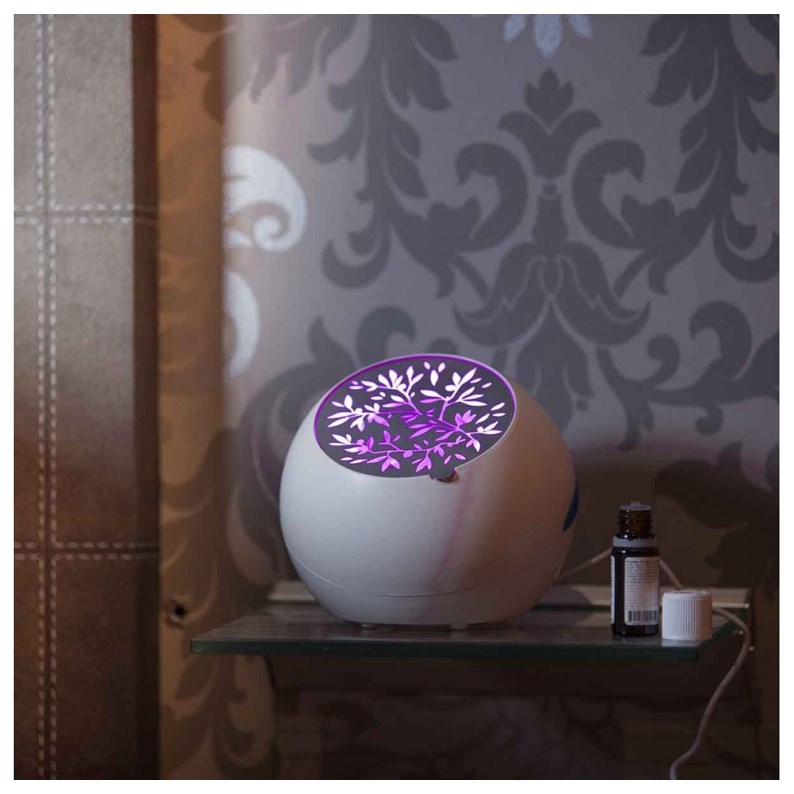 Ventilia diffuse par ventilation à froid. Grâce à son mode de diffusion à air pulsé sans chaleur, les molécules aromatiques conservent leur pureté. Le ventilateur propulse un souffle d’air qui diffuse les huiles essentielles tout en s’illuminant de variations colorées. Grâce à cette variation colorée interchangeable vous pouvez choisir la couleur de votre éclairage pour une ambiance à votre convenance !