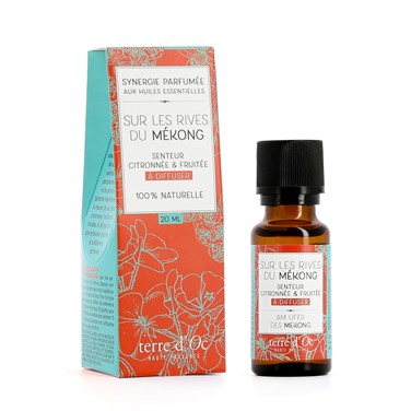 Laissez-vous transporter sur les rives du Mékong... Cette synergie aux huiles essentielles vous invite à découvrir une nouvelle façon naturelle de parfumer votre intérieur. La synergie parfumée laisse éclater les notes fraîches et fruitées de la verveine exotique, de l'orange, du pamplemousse et du géranium. Il suffit de quelques gouttes de cette synergie dans votre diffuseur d'huiles essentielles pour profiter chez vous d'une ambiance pétillante et subtilement parfumée.