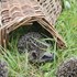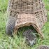 Dispersez quelques feuilles mortes dans le panier. Recouvrez ensuite le panier d'une épaisse couche de feuilles, puis d'une feuille de plastique, puis à nouveau de feuilles, branches et autres matériaux naturels. L'ouverture doit être laissée libre, et de préférence, ne pas faire face au nord ou au nord-est. Il est important que la structure soit suffisamment solide, afin que les chiens et les blaireaux ne puissent pas la détruire facilement