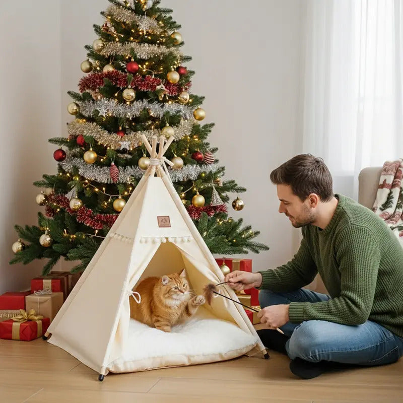 Tipi en coton pour animaux avec coussin