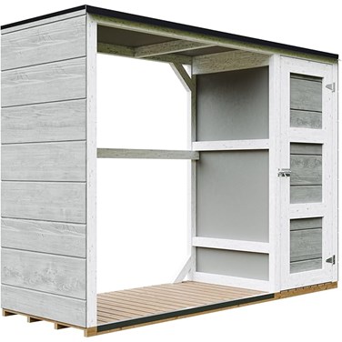 Ce modèle comprend un rangement latéral pratique avec une porte sécurisée par un loquet, ce qui est parfait pour bien ranger les outils de jardinage ou les accessoires d'extérieur. Un petit plus pratique qui améliore l'utilisation quotidienne tout en conservant l'aspect moderne de l'abri.
