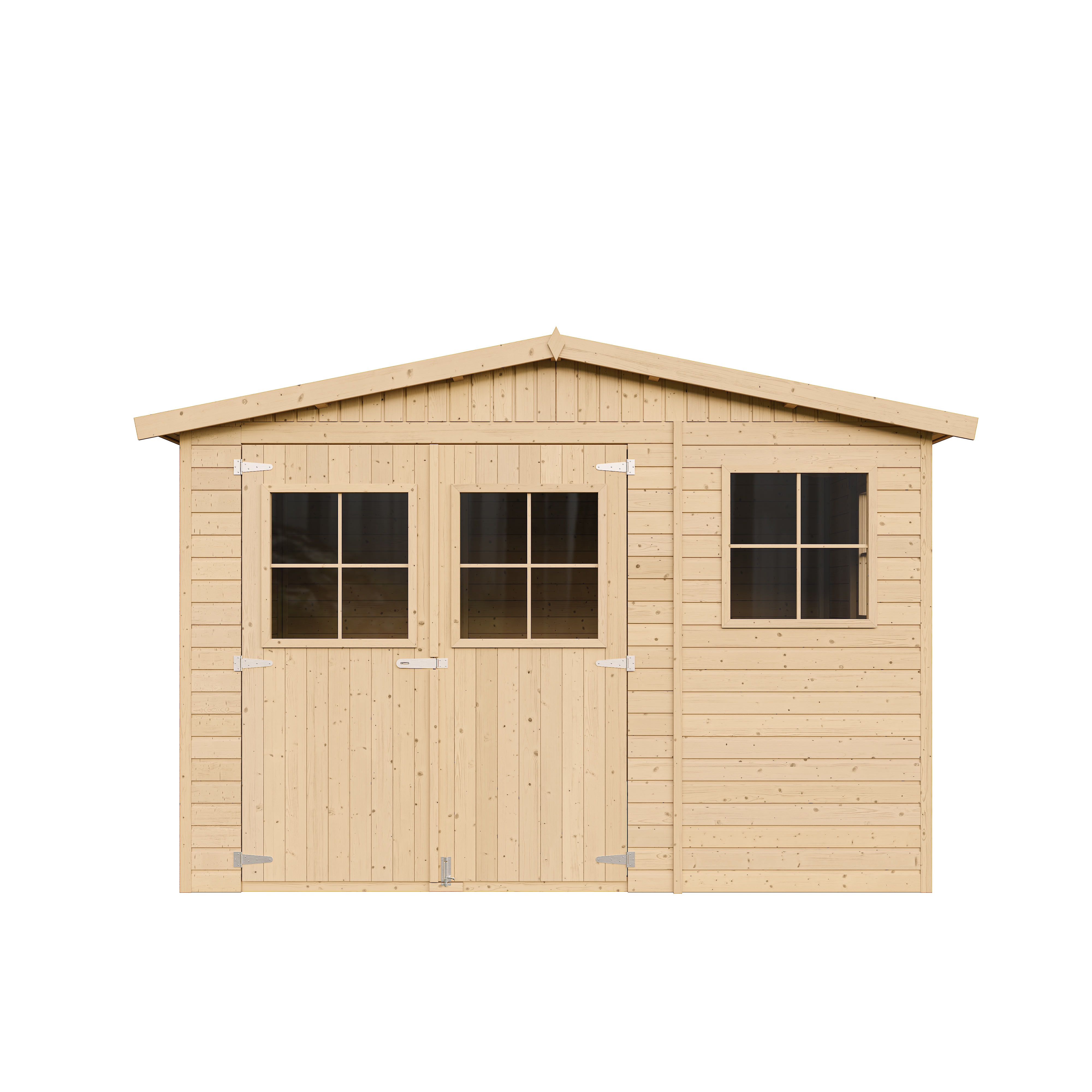 - Toutes les pièces en bois sont livrées naturelles. Lors de l'assemblage, la languette et la rainure doivent être enduites d'un produit de préservation du bois pour éviter la pourriture. L'extérieur doit être peint immédiatement après l'installation avec un vernis de préservation du bois pigmenté à pores ouverts.