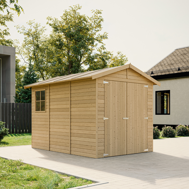 Garage en bois naturel - h222x244x320 cm 6 m² - beige