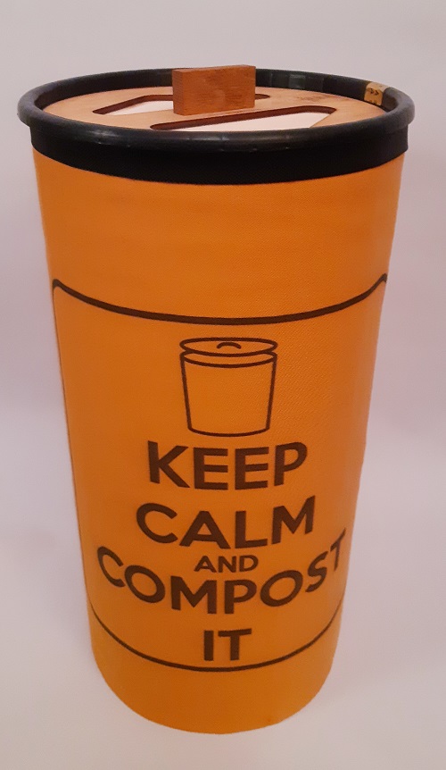 Comprend un seau à biodéchets aéré, 3 sacs de toile synthétique, une soucoupe plastique.