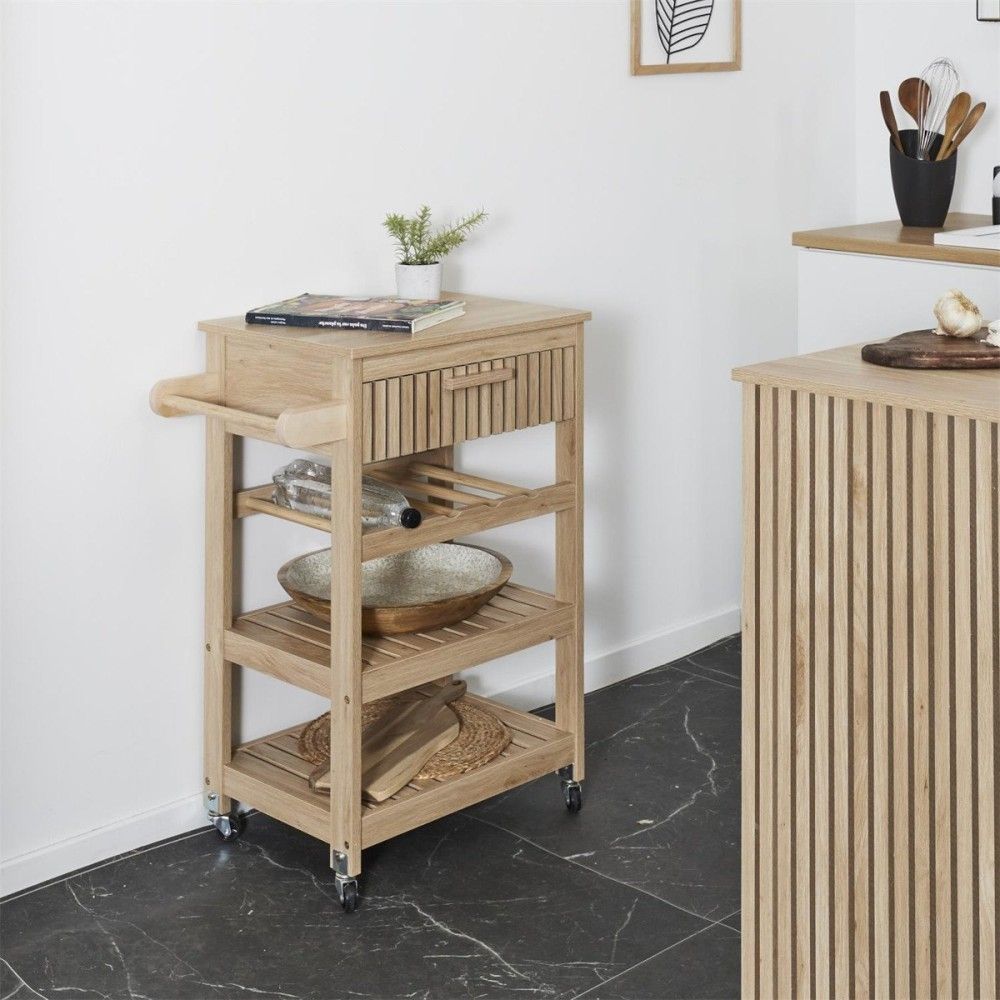 Le charme de cette desserte à roulettes au design épuré va vous faire craquer et apportera du style dans votre intérieur en plus d'un espace de rangement ultra pratique!