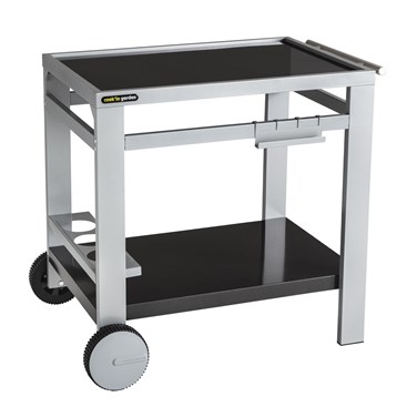La desserte MEDIA M est conçue pour accueillir votre plancha, électrique ou au gaz, et tout votre équipement de cuisine d'extérieur. Elle est équipée de 4 crochets réversibles en porte-ustensiles et de 3 porte-bouteilles. Tout y est pour optimiser au maximum le rangement de vos aliments, plats et ustensiles. Elle possède également 2 roulettes et une poignée pour la déplacer facilement et sans risques à travers tout votre jardin.