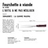 - Fourchette à viande : L 38.5 × l 8.5 × H 3.3 cm- Longueur du couteau : 31.1 cm- Longueur de la lame : 17.2 cm- Longueur du manche : 13.9 cm- Largeur de la lame : 2.7 cm- Épaisseur de la lame : 0.540 cm
