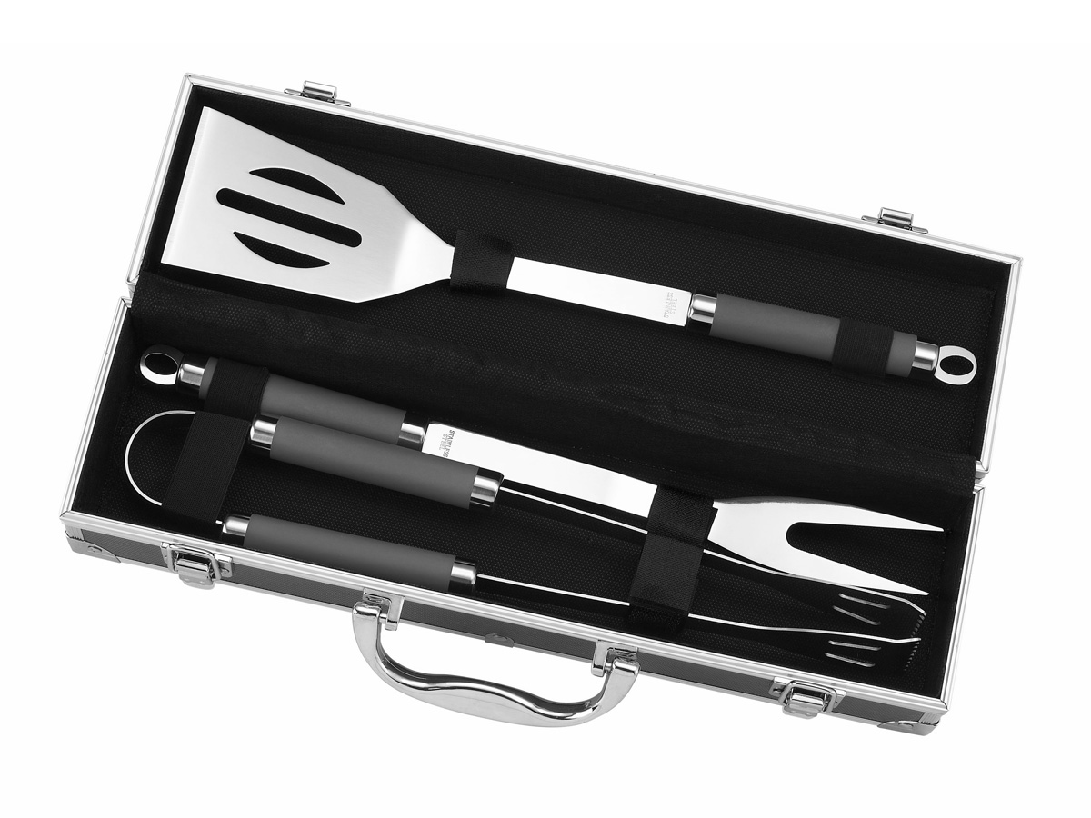 Que vous possédiez une plancha ou un barbecue, cette malette d'ustensiles vous sera très utile. Elle se compose de 3 ustensiles en inox :