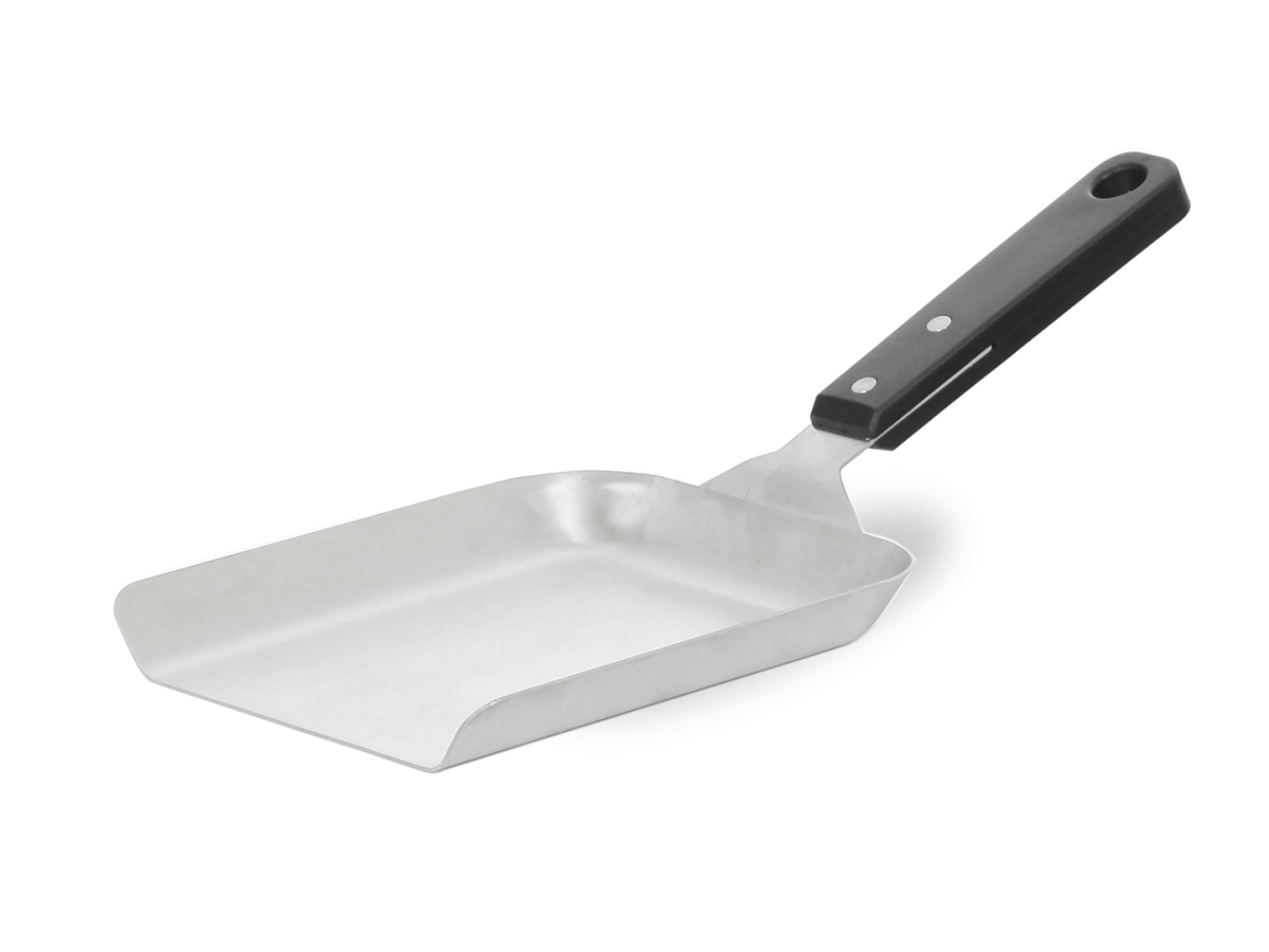 Grâce à ses rebords, cette spatule est idéale pour manipuler vos aliments, notamment les légumes coupés, les moules, et tout autre petit aliment lors de la cuisson.