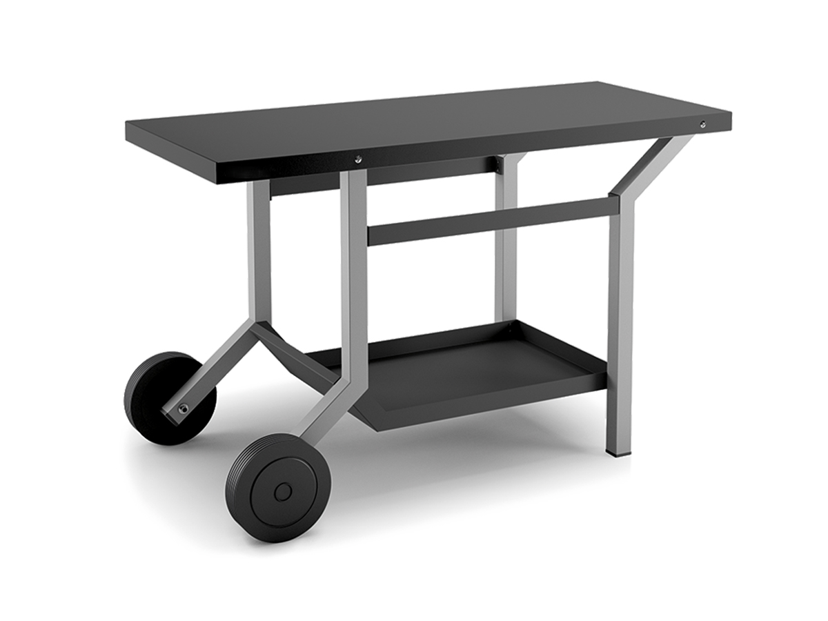 La table roulante TRA NG de Forge Adour est fabriquée en acier avec un revêtement 3 couches pour supporter les conditions extérieures.