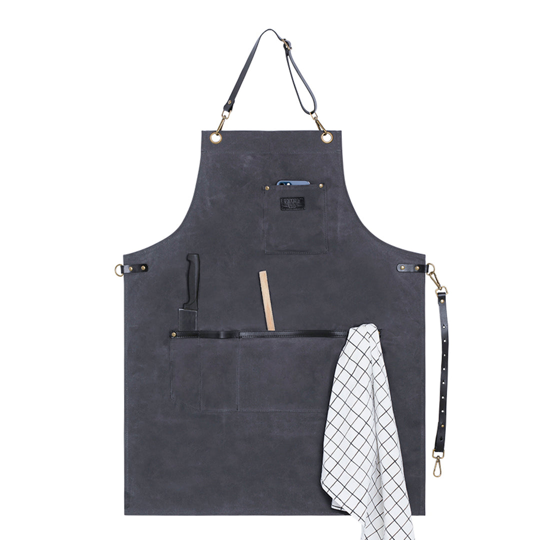 Des poches partout : 1 grande poche marsupiale, 3 poches à accessoires (pinces, couteaux...), 1 poche à portable, 1 passant à torchon