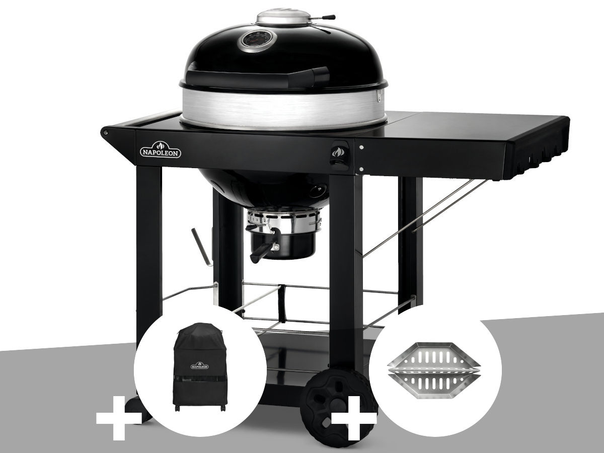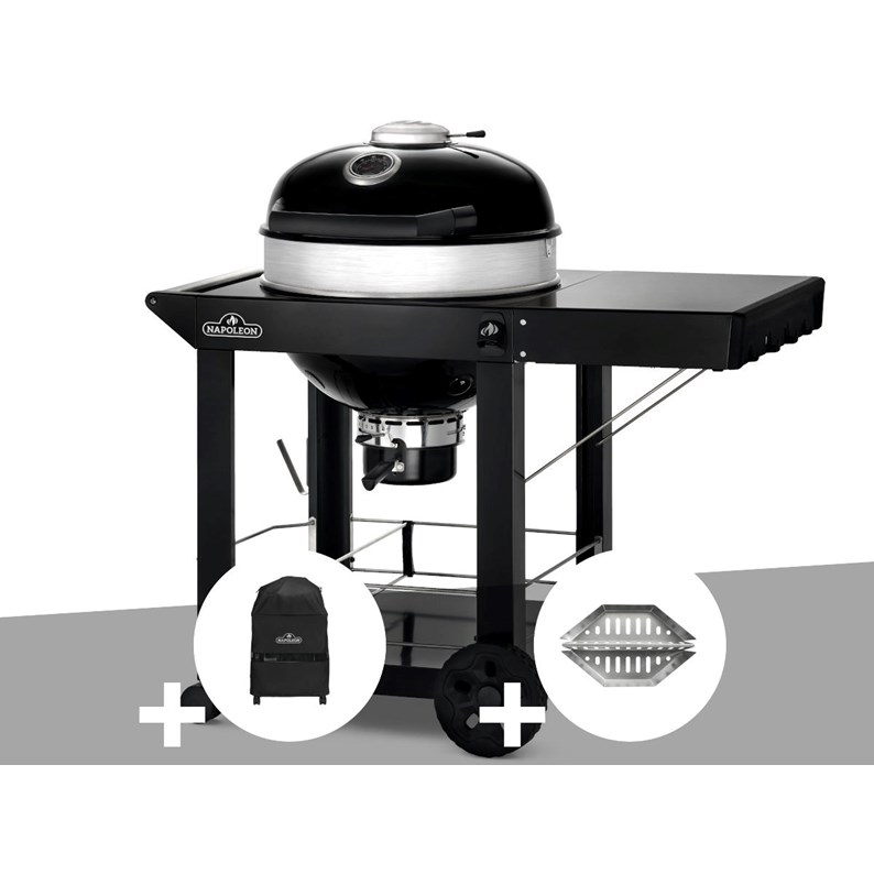 Barbecue à charbon kettle pro 57 cm sur chariot + housse de protection + lot de