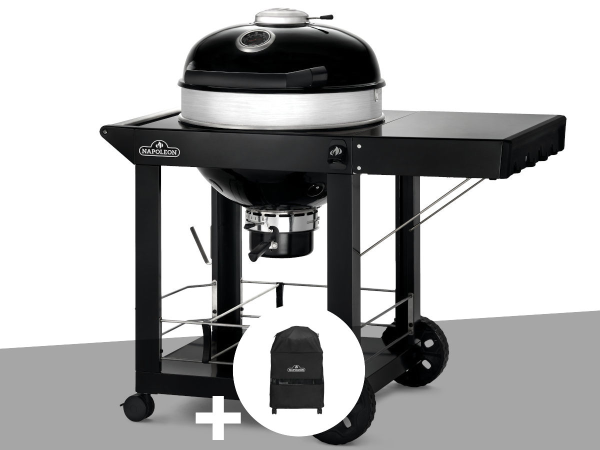 Barbecue à charbon kettle pro 57 cm sur chariot + housse de protection - napoleo