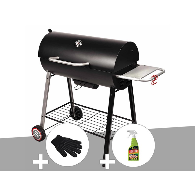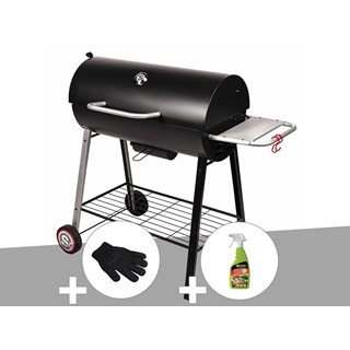 Barbecue à charbon sur chariot michigan + gant de protection + dégraissant pour
