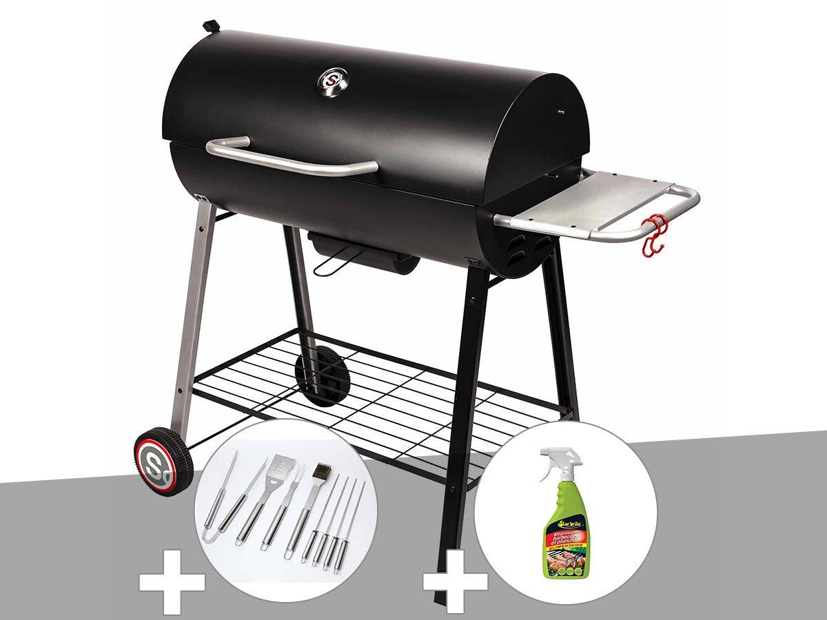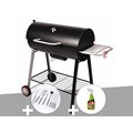 Barbecue à charbon sur chariot michigan + malette de 8 accessoires inox + dégrai