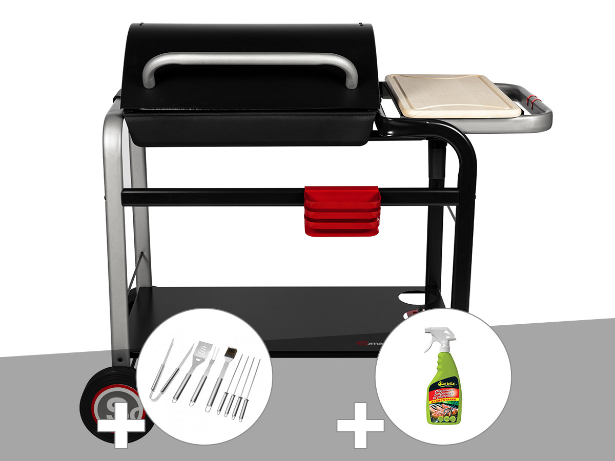 Barbecue à charbon vulcano 2600 + malette 8 ustensiles + dégraissant barbecues -