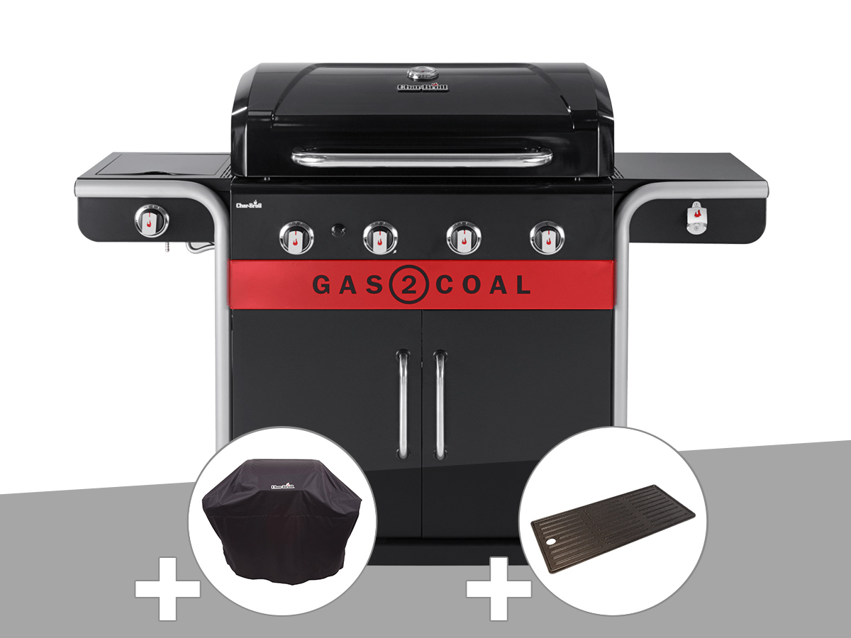 Barbecue à gaz et à charbon gas2coal 2.0 4b + housse de protection + plancha - c