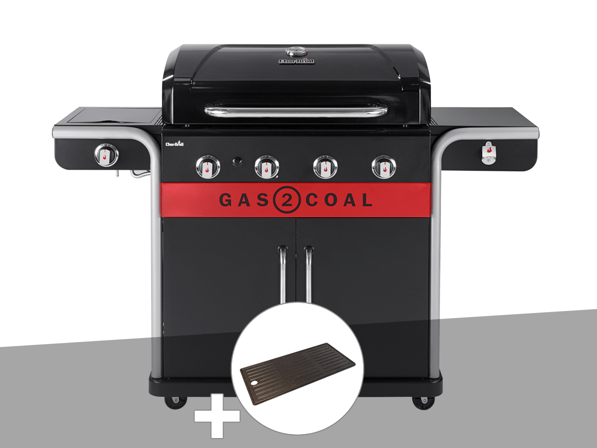 Barbecue à gaz et à charbon gas2coal 2.0 4b + plancha - char-broil