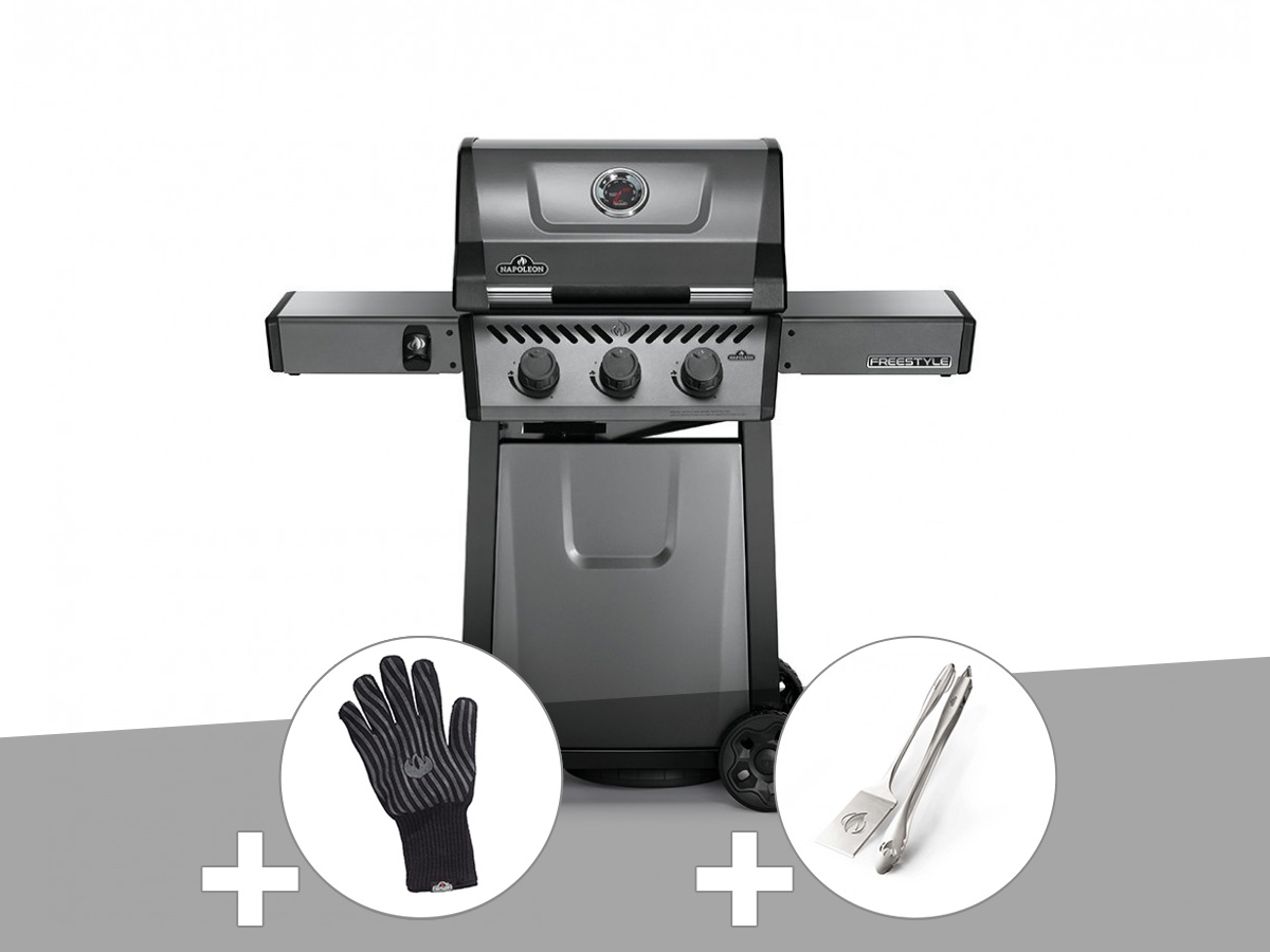 Barbecue à gaz freestyle f365 + gant + ensemble 2 ustensiles - napoleon