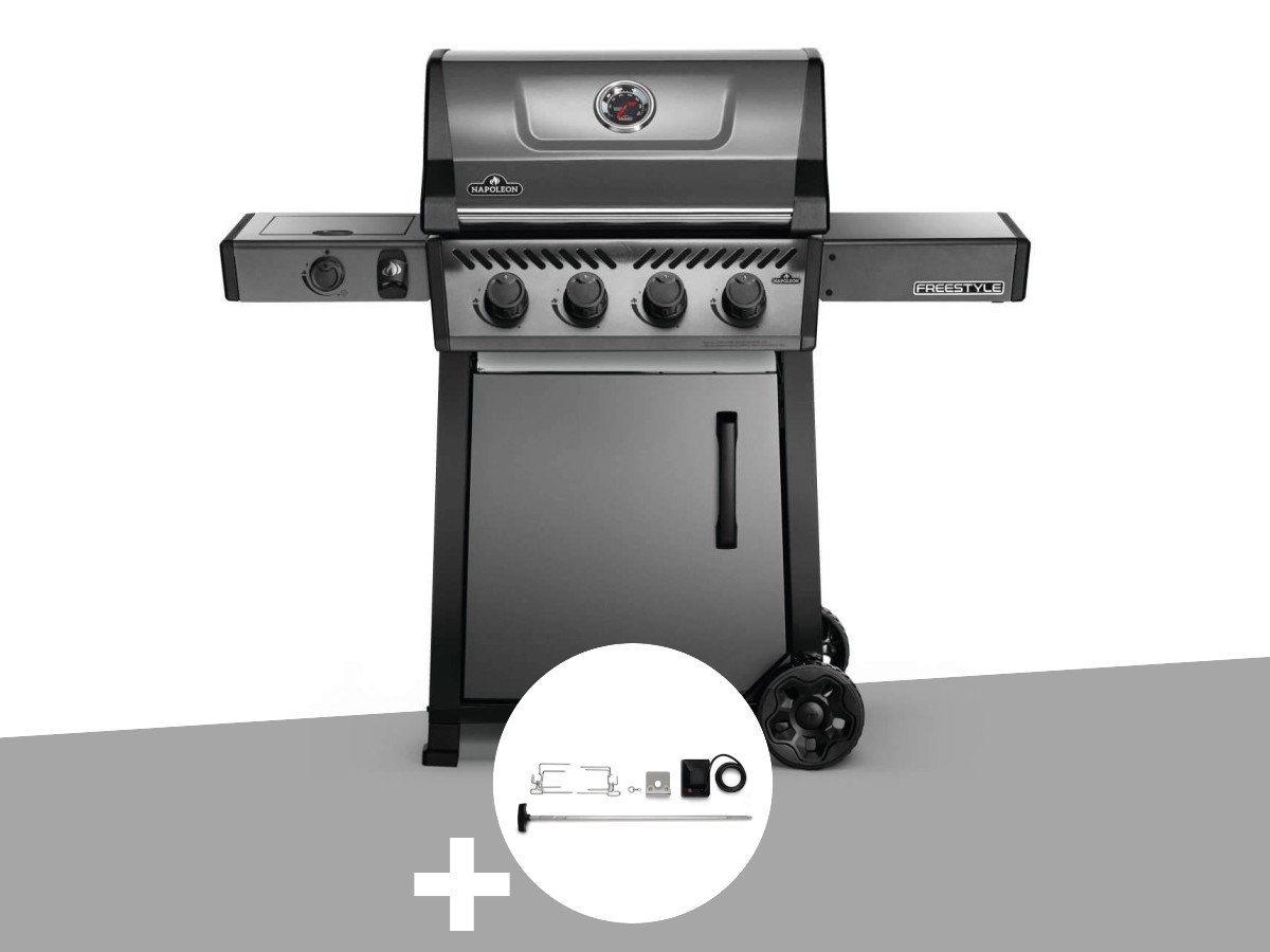 Barbecue à gaz freestyle f425sib - 4 brûleurs + sizzle zone + kit rôtissoire - n