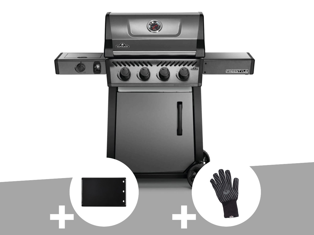 Barbecue à gaz freestyle f425sib - 4 bûleurs + sizzle zone + plancha + gant anti