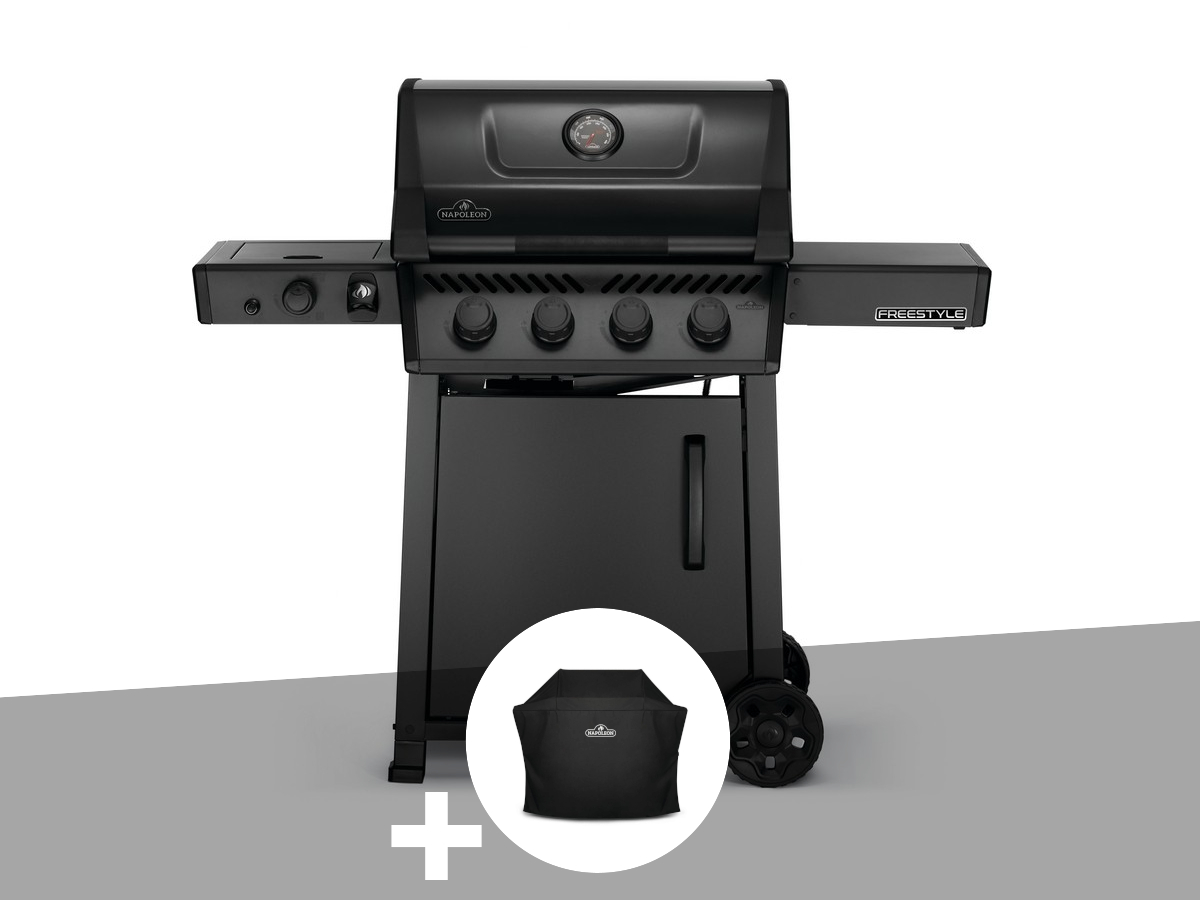 Barbecue à gaz phantom freestyle 425 sib noir mat 4 brûleurs + housse de protect