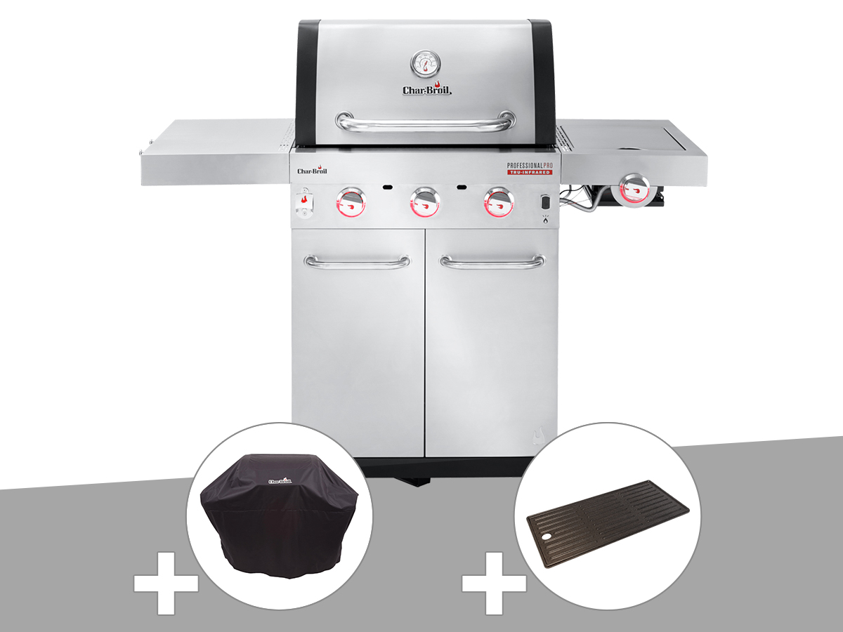 Barbecue à gaz professional pro s 3 + housse de protection + plancha - char-broi