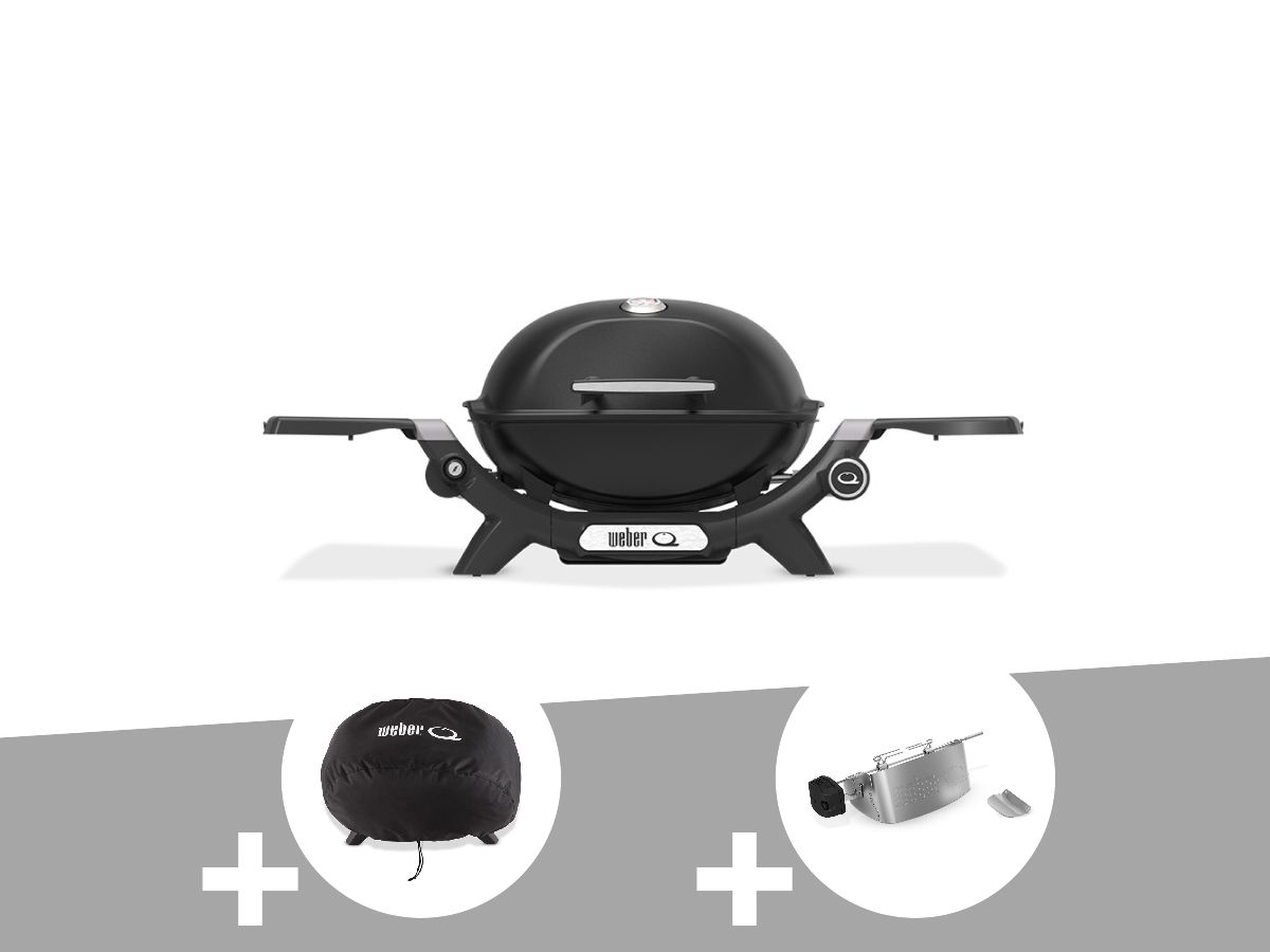 Barbecue à gaz q 1200n noir + housse + rôtissoire - weber