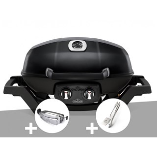 Barbecue à gaz travel q pro 285 noir + rôtissoire + ensemble 2 ustensiles - napo