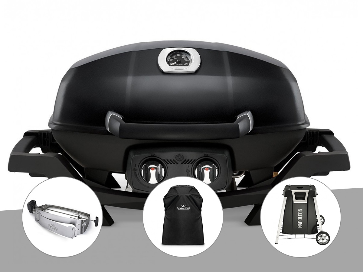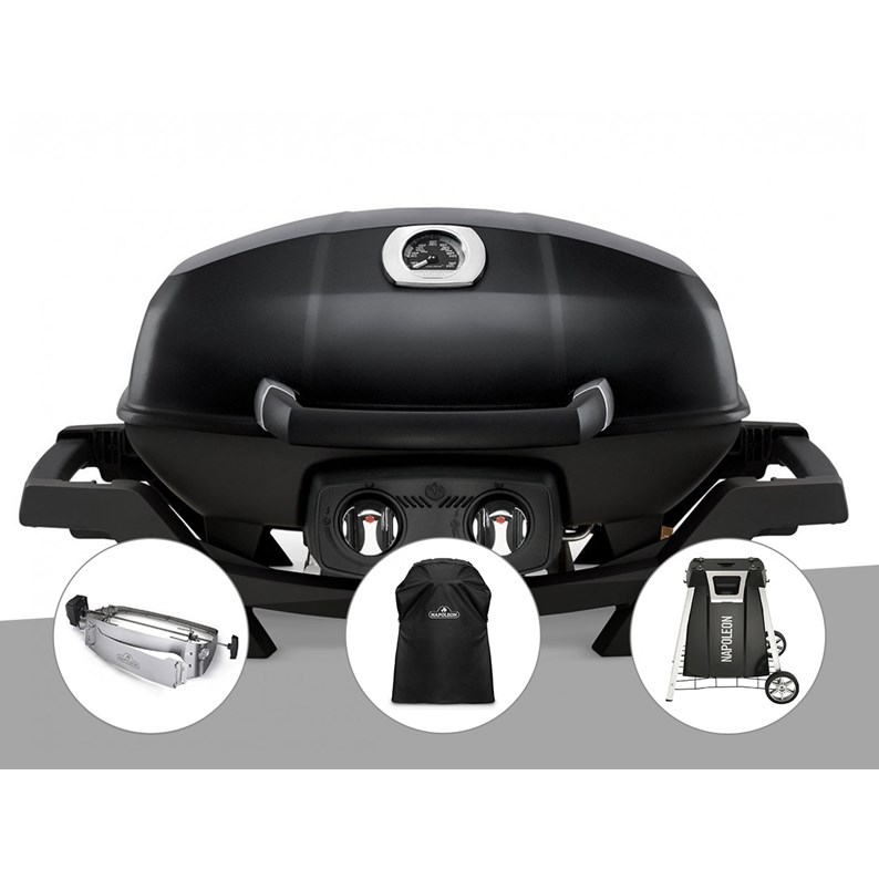 Barbecue à gaz travel q pro 285 noir + rôtissoire + housse + chariot - napoleon