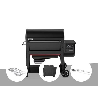 Barbecue à pellets searwood xl 600 + kit de fumage + housse + rôtissoire - weber