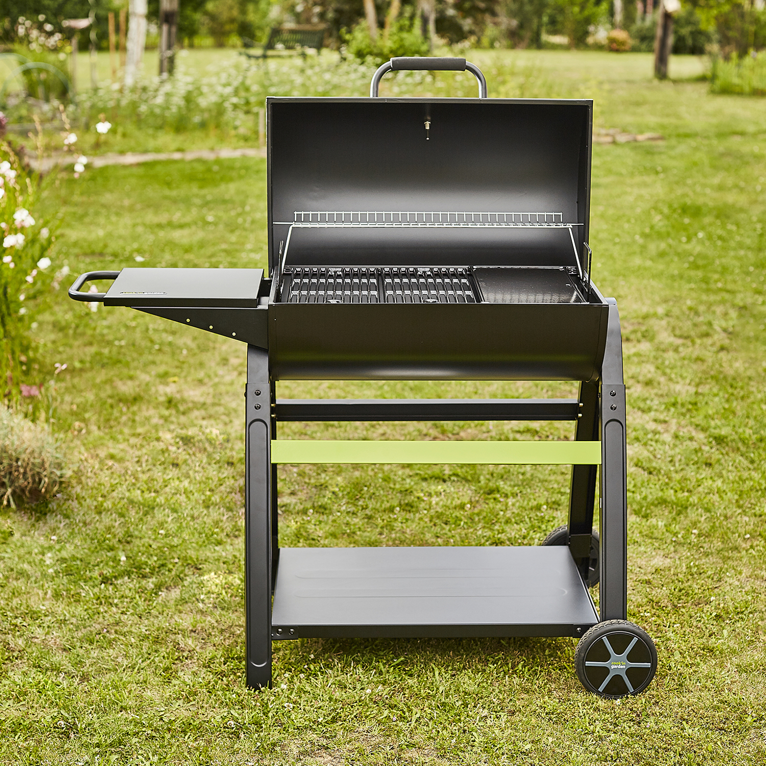 Avec le barbecue au charbon TONINO 70, ne ratez aucune grillade, avec son thermomètre intégré au capot, ses deux grilles de cuisson et sa grille d'attente, et son système d'aération.