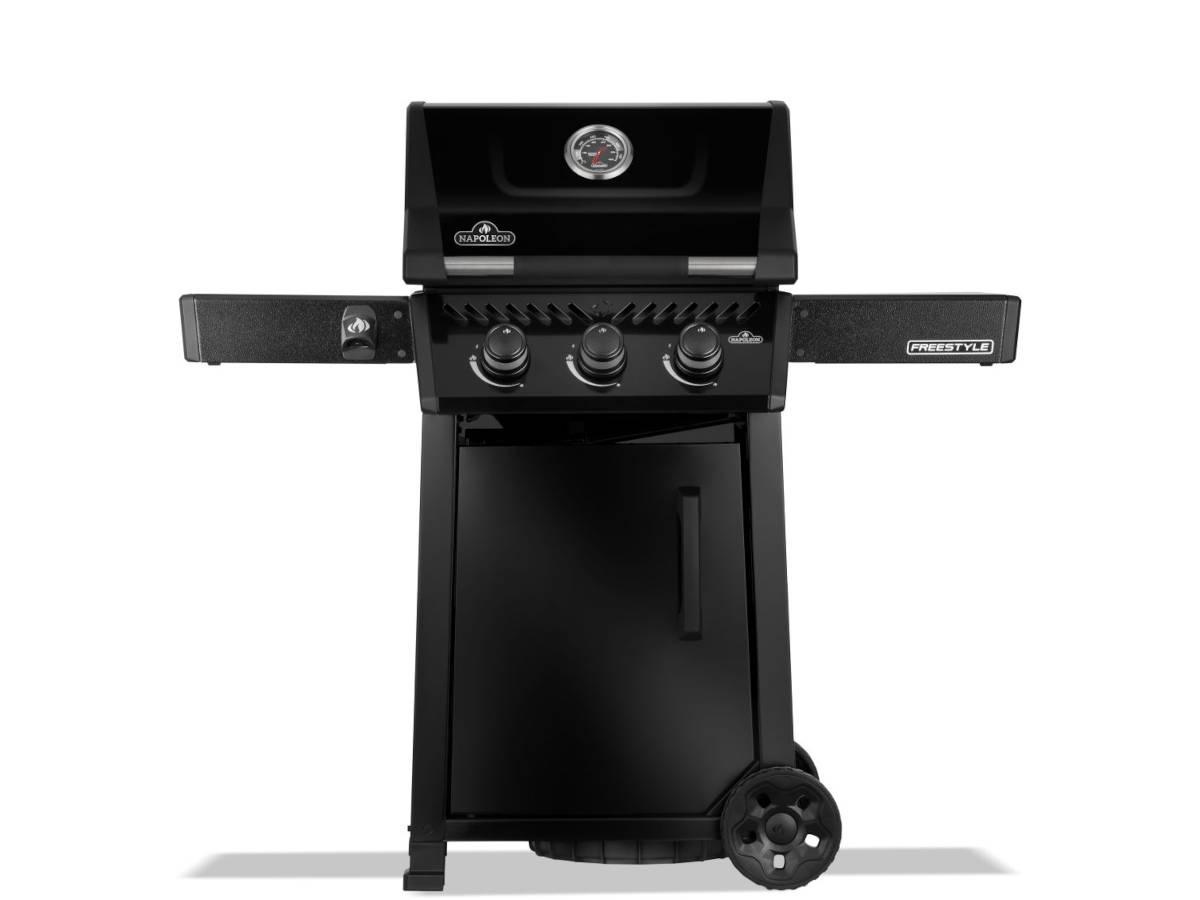 Barbecue gaz freestyle 365 noir 3 brûleurs avec porte et brûleurs inox - napolé