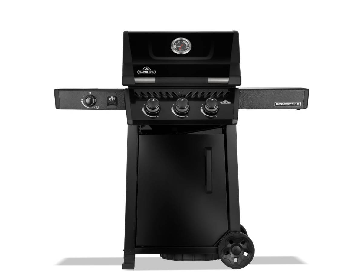 Barbecue gaz freestyle 365 noir 3 brûleurs et 1 réchaud latéral, avec porte et b